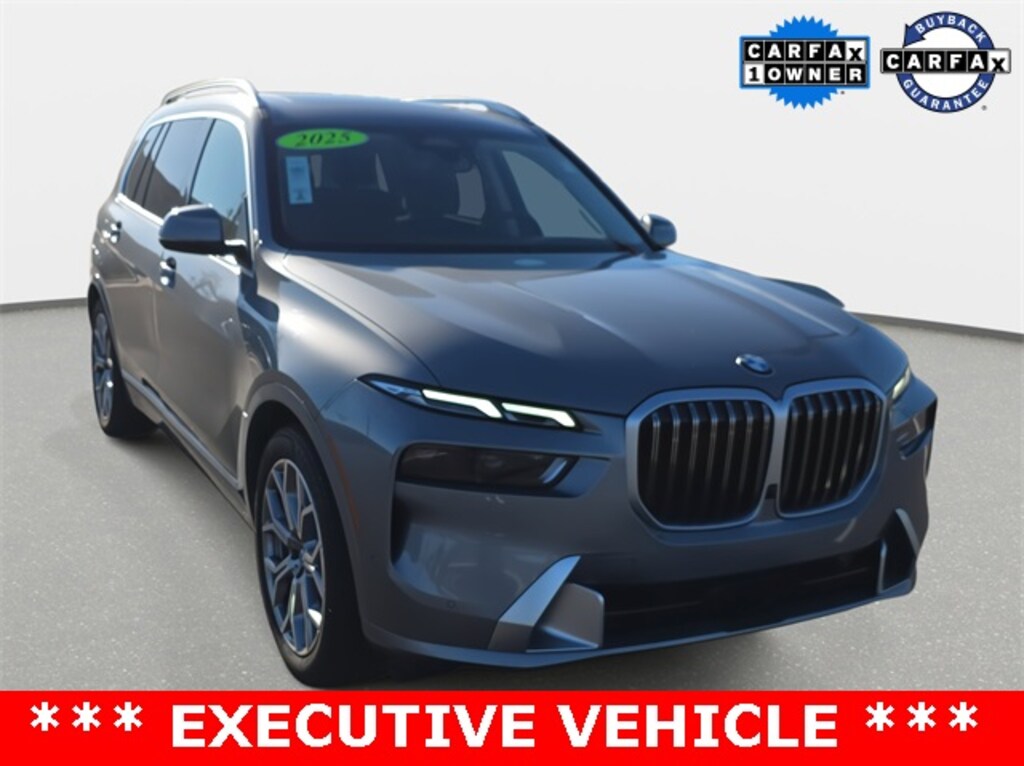 CARFAX One-Owner. Clean CARFAX. 2025 BMW X7 xDrive40i Frozen Pure Gray Metallic AWD 8-Speed Automatic Sport 3.0L I6 DOHC 24V *ONE OWNER...NO ACCIDENTS REPORTED*, *ONE OWNER*, *BACKUP CAMERA*, *BLUETOOTH*, *NAVIGATION*, *APPLE CARPLAY/ANDROID AUTO*, *ALUMINUM ALLOY WHEELS*, *REMOTE START*, *SIRIUS XM*, *LEATHER*, *ALL WHEEL DRIVE*, 3rd row seats: split-bench, Connected Package Pro, Exterior Parking Camera Rear, Fully automatic headlights, Heads-Up Display, Heated Multi-Contour Seats, Navigation system: BMW Maps Navigation, Power Front Seats, Power moonroof, Security system, Wheels: 21" x 9.5" Y-Spoke Bicolor.