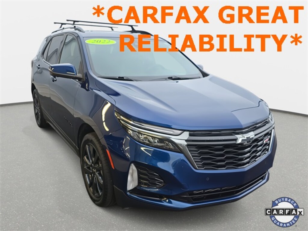 Clean CARFAX. 2022 Chevrolet Equinox RS Blue Glow Metallic AWD 6-Speed Automatic Electronic with Overdrive 1.5L DOHC *ALL WHEEL DRIVE*, AWD, 120-Volt Power Outlet, 2 USB Data Ports, 2 USB Data Ports w/SD Card Reader, Adaptive Cruise Control, Advanced Safety Package, Auto High-beam Headlights, Bose Premium 7-Speaker Audio System Feature, Driver Seatback Map Pocket, Fully automatic headlights, HD Surround Vision, Heated Steering Wheel, Infotainment Package, Outside Heated Power Adjustable Mirrors, Perforated Leather-Appointed Seat Trim, Power Liftgate, Power Sunroof, Preferred Equipment Group 1RS, Radio: Chevrolet Infotainment 3 Plus System w/Navi, RS Leather Package.