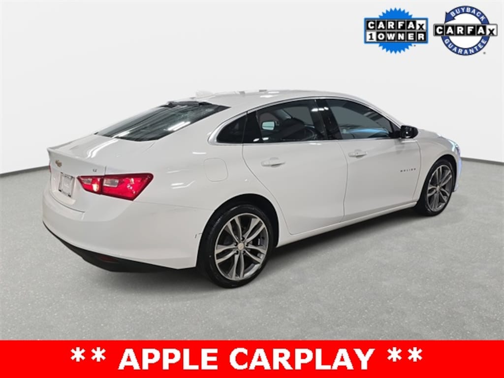 CARFAX One-Owner. 2023 Chevrolet Malibu LT 1LT Summit White FWD CVT 1.5L DOHC *APPLE CARPLAY/ANDROID AUTO*, *ALUMINUM ALLOY WHEELS*, *SIRIUS XM*, Black Cloth, 19" Aluminum Wheels, Apple CarPlay/Android Auto, Auto High-beam Headlights, Exterior Parking Camera Rear, Fully automatic headlights, Preferred Equipment Group 1LT, Security system.