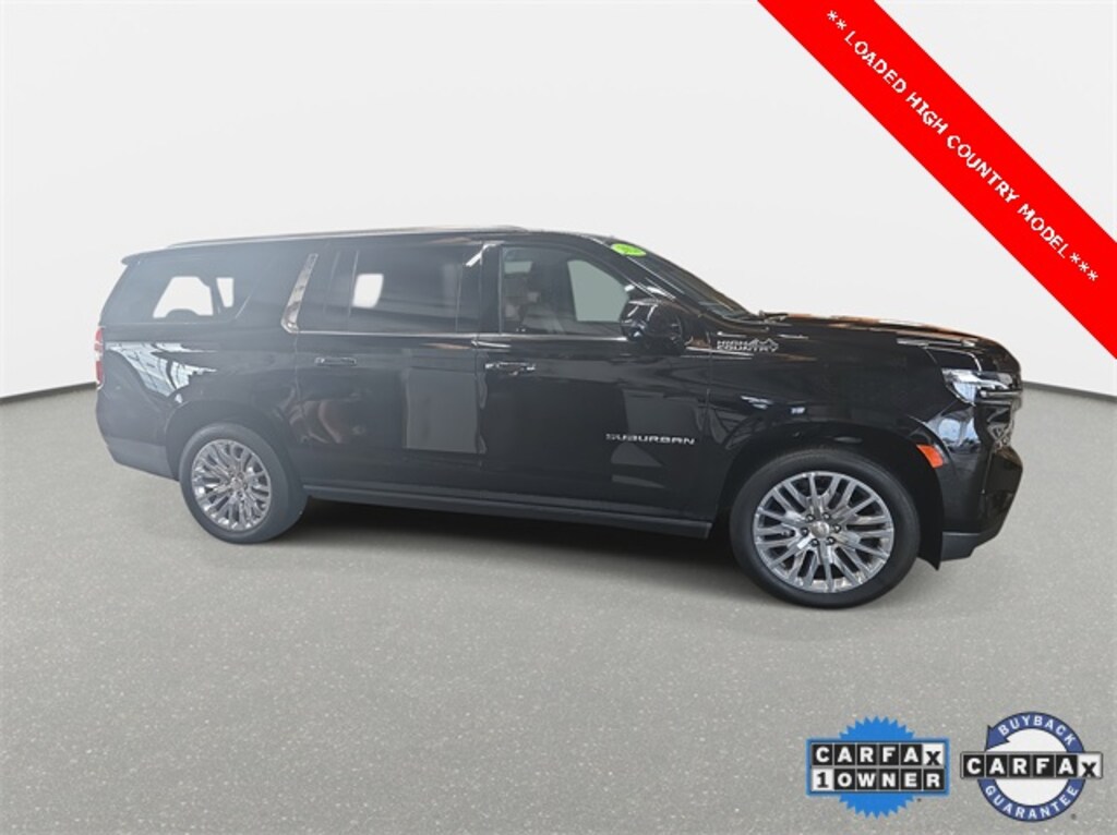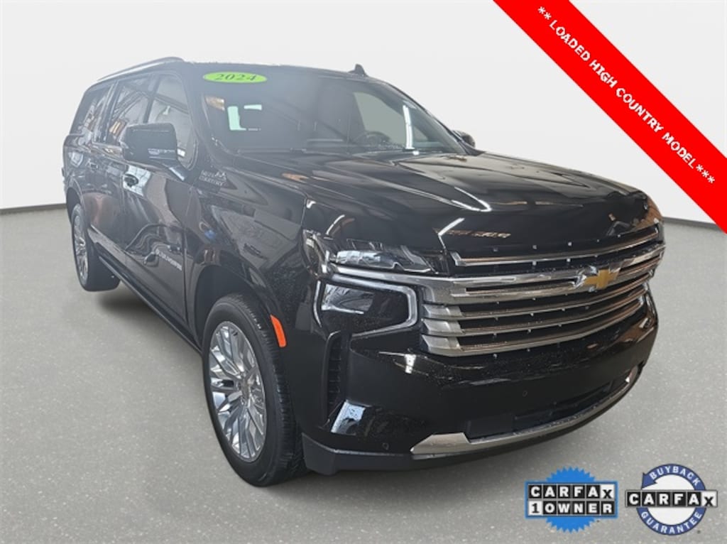 Clean CARFAX. 2024 Chevrolet Suburban High Country Black 4WD 10-Speed Automatic with Overdrive EcoTec3 6.2L V8 *ONE OWNER*, 12-Way Power Driver & Passenger Seat Adjusters, 15" Diagonal Multi-Color Head-Up Display, 1st & 2nd Row Color-Keyed Carpeted Floor Mats, 2-Speed Active Electronic AutoTrac Transfer Case, 3rd Row 60/40 Power-Folding Split-Bench, Adaptive Cruise Control, Advanced Trailering Package, Air Ride Adaptive Suspension, Bose 10-Speaker Surround w/CenterPoint, Bright Front & Rear Door Sill Plates, Chrome Door Handles w/Body-Color Strip, Color-Keyed Carpeting Floor Covering, Driver & Front Outboard Passenger Airbags, Dual Exhaust System, Dual-Pane Power Panoramic Sunroof, Enhanced Automatic Emergency Braking, Enhanced Driver Information Center, Extra Capacity Cooling System, Floor Console, Hands-Free Rear Power Programmable Liftgate, HD Surround Vision, Heated 2nd Row Outboard Seats, Heated Driver & Front Passenger Seats, Heated Steering Wheel, High Country Deluxe, Hill Descent Control, Hitch View w/Pan/Zoom Image Adjustment, Infotainment Display, Inside Rearview Auto-Dimming Rear Camera Mirror, Integrated Trailer Brake Controller, Lane Change Alert w/Side Blind Zone Alert, LED Daytime Running Lamps, Max Trailering Package, Memory Settings, Navigation System, Outside Heated Power-Adjustable Mirrors, Perforated Heated & Ventilated Seats, Power Liftgate, Power Release 2nd Row Bucket Seats, Power Tilt & Telescopic Steering Column, Power-Retractable Assist Steps, Preferred Equipment Group 3LZ, Rear Camera Mirror Washer, Rear Cross Traffic Alert, Rear Pedestrian Alert, Remote Start, Safety Alert Seat, Security system, SiriusXM w/360L, Smart Trailer Integration Indicator, Trailer Side Blind Zone Alert, Universal Home Remote, Wireless Charging, Wrapped Steering Wheel.