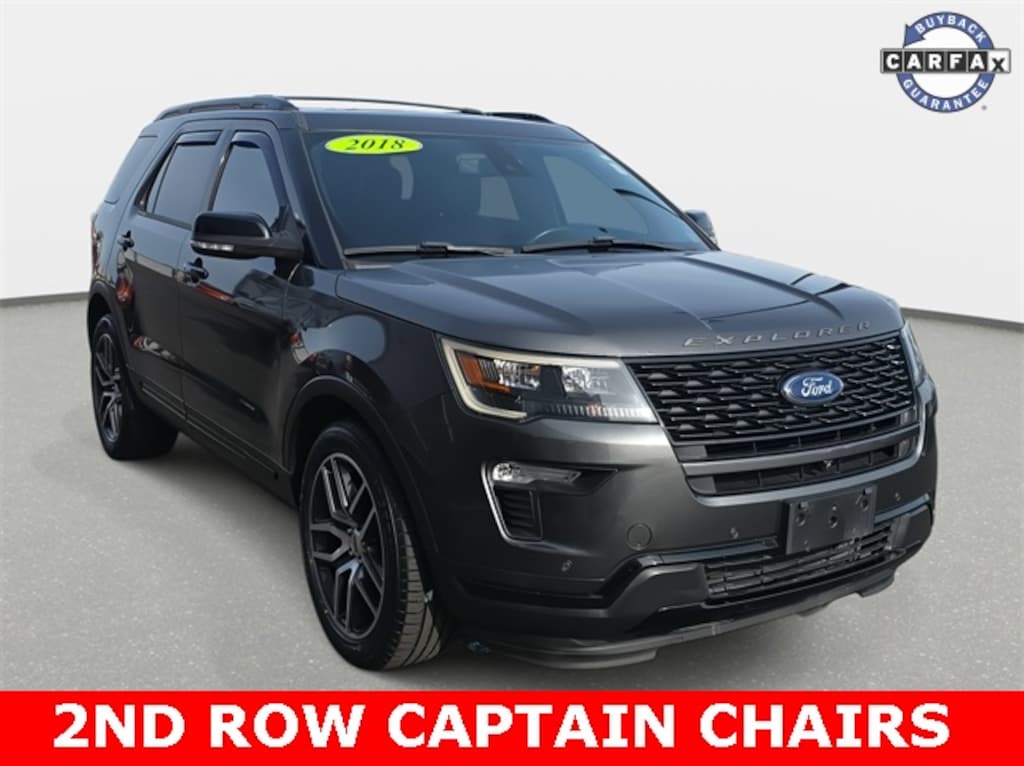 2018 Ford Explorer Sport Magnetic 4WD 6-Speed Automatic with Select-Shift 3.5L V6 *CLEAN HISTORY...NO ACCIDENTS REPORTED*, *RECENT TRADE IN*, *4 WHEEL DRIVE*, 4WD, 110V/150W AC Power Outlet, 20" Machined Aluminum w/Painted Pockets Wheels, 2nd Row Heated Seats, Ambient Lighting, Delay-off headlights, Dual 2nd Row Smart Charging USB, Equipment Group 401A, Ford Safe & Smart Package, Front 180 Degree Camera w/Split View & Washer, Fully automatic headlights, Inflatable Rear Safety Belts, Memory Feature, Navigation System, Perforated Leather Heated/Cooled Bucket Seats, Power Liftgate, Power Tilt/Telescoping Steering Wheel, Radio: Premium Sound from Sony, Remote Control Front Windows, Twin Panel Moonroof, Universal Garage Door Opener (UGDO).