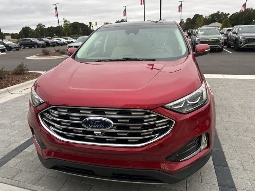 Come See This 2020 Rapid Red Metallic Tinted Clearcoat Ford Edge Titanium FWD and many more at Sport Durst Automotive today!