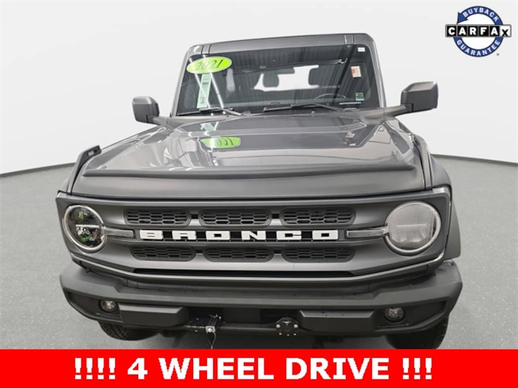 2021 Ford Bronco Big Bend Gray Metallic 4WD 10-Speed Automatic 2.3L EcoBoost I-4 *CLEAN HISTORY...NO ACCIDENTS REPORTED*, *BACKUP CAMERA*, *BLUETOOTH*, *NAVIGATION*, *APPLE CARPLAY/ANDROID AUTO*, *ALUMINUM ALLOY WHEELS*, *4 WHEEL DRIVE*, Auto High-beam Headlights, Convertible HardTop, Convertible roof lining, Equipment Group 221A Standard Package, Exterior Parking Camera Rear, Fully automatic headlights, Hard Top Sound Deadening Headliner (DISC), Remote keyless entry, Security system, Wheels: 17" Carbonized Gray-Painted Aluminum.