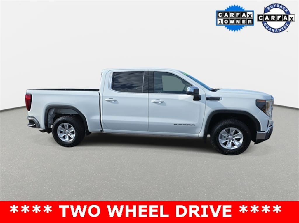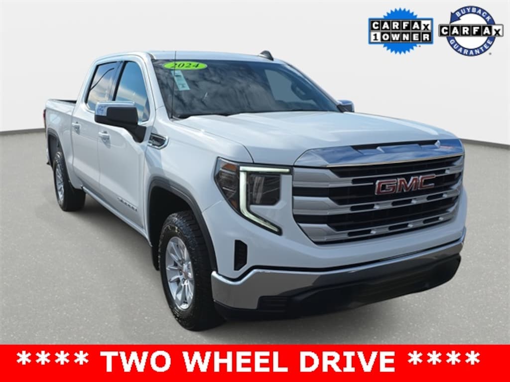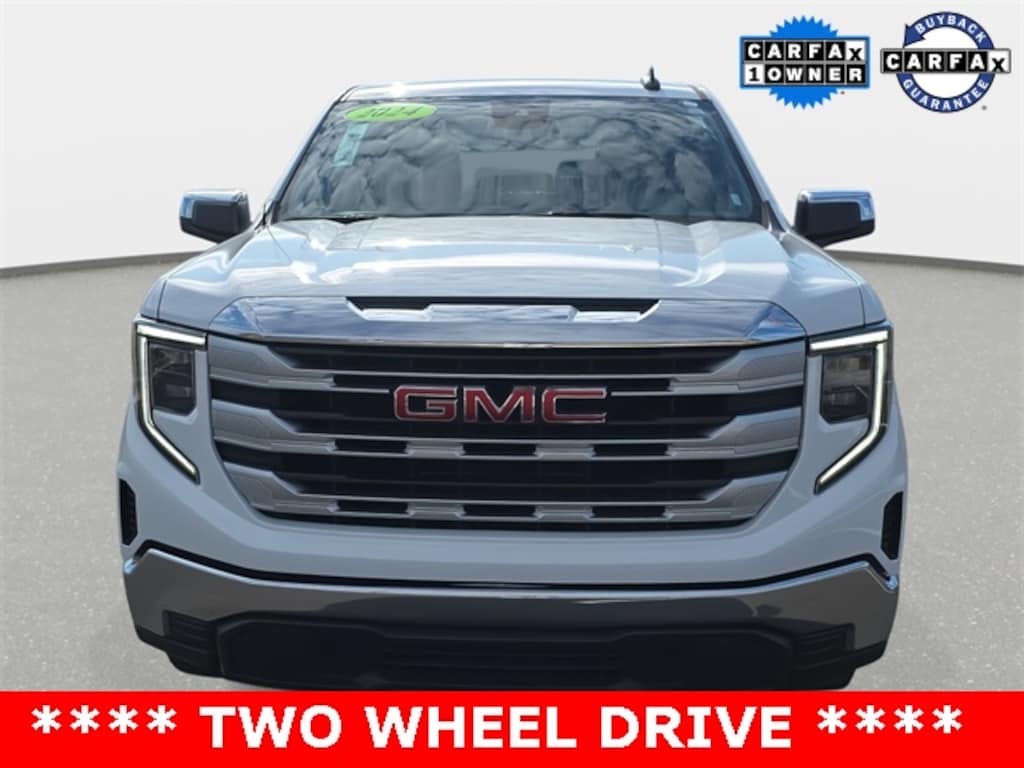 CARFAX One-Owner. Clean CARFAX. 2024 GMC Sierra 1500 SLE Summit White RWD 8-Speed Automatic 2.7L I4 Turbocharged DOHC 16V LEV3-SULEV30 310hp *CLEAN HISTORY...NO ACCIDENTS REPORTED*, *ONE OWNER*, *BACKUP CAMERA*, *BLUETOOTH*, *APPLE CARPLAY/ANDROID AUTO*, *ALUMINUM ALLOY WHEELS*, *SIRIUS XM*, *TOW PACKAGE*, 8-Speed Automatic, Black Cloth, 120-Volt Interior Power Outlet, 2 Charge/Data USB Ports, Alloy wheels, Auto High-beam Headlights, Chrome Header w/Medium Silver Grille Insert Bars, Color-Keyed Carpeting Floor Covering, Deep-Tinted Glass, Electric Rear-Window Defogger, Fully automatic headlights, GMC Connected Access Capable, HD Rear Vision Camera, Hitch Guidance, Keyless Open & Start, Manual Tilt-Wheel & Telescoping Steering Column, Navigation System, OnStar & GMC Connected Services Capable, Panic alarm, Power Door Locks, Power Front Windows w/Driver Express Up/Down, Power Front Windows w/Passenger Express Down, Power Rear Windows w/Express Down, Preferred Equipment Group 3SA, Push Button Start, Remote Start Package, Remote Vehicle Starter System, SiriusXM w/360L, SLE Convenience Package, SLE Value Package, Steering Wheel Audio Controls, Theft Deterrent System (Unauthorized Entry), Trailering Package, Wi-Fi Hotspot Capable.