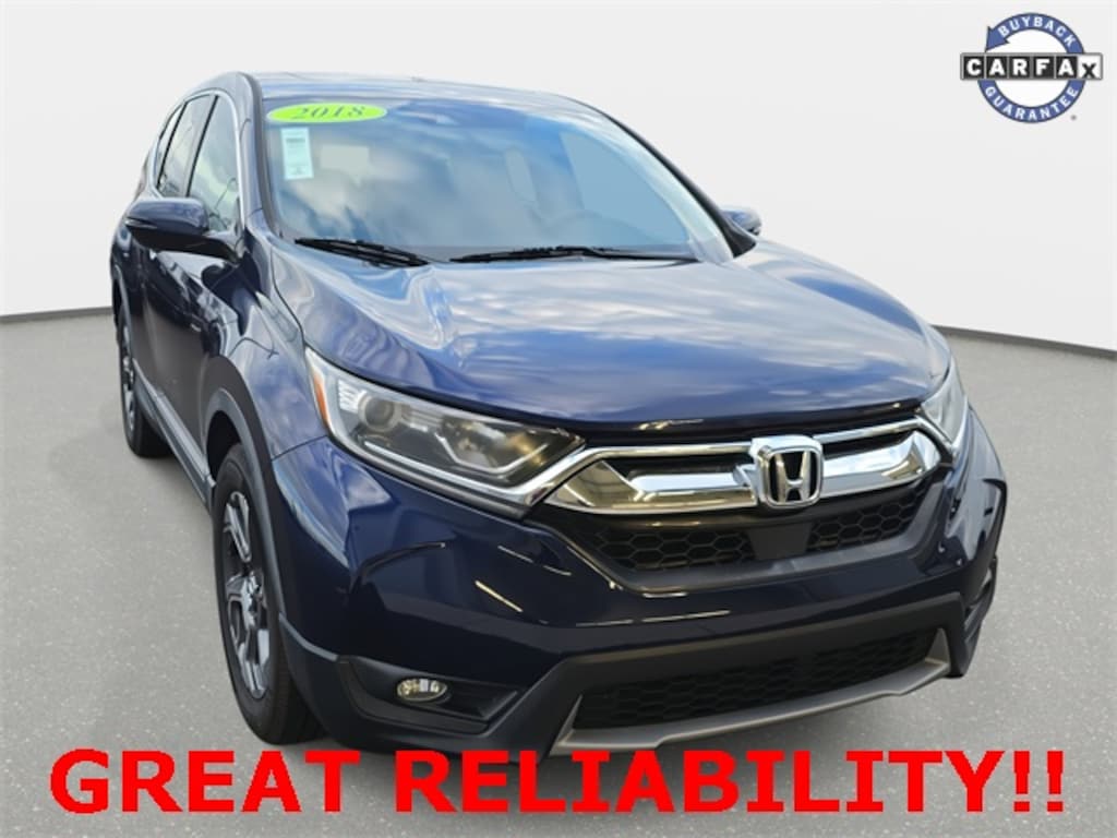 Clean CARFAX. 2018 Honda CR-V EX-L Obsidian Blue Pearl FWD CVT 1.5L I4 DOHC 16V *CLEAN HISTORY...NO ACCIDENTS REPORTED*, *RECENT TRADE IN*, 18" Alloy Wheels, Apple CarPlay/Android Auto, Exterior Parking Camera Rear, Fully automatic headlights, Power Liftgate, Remote keyless entry, Security system.