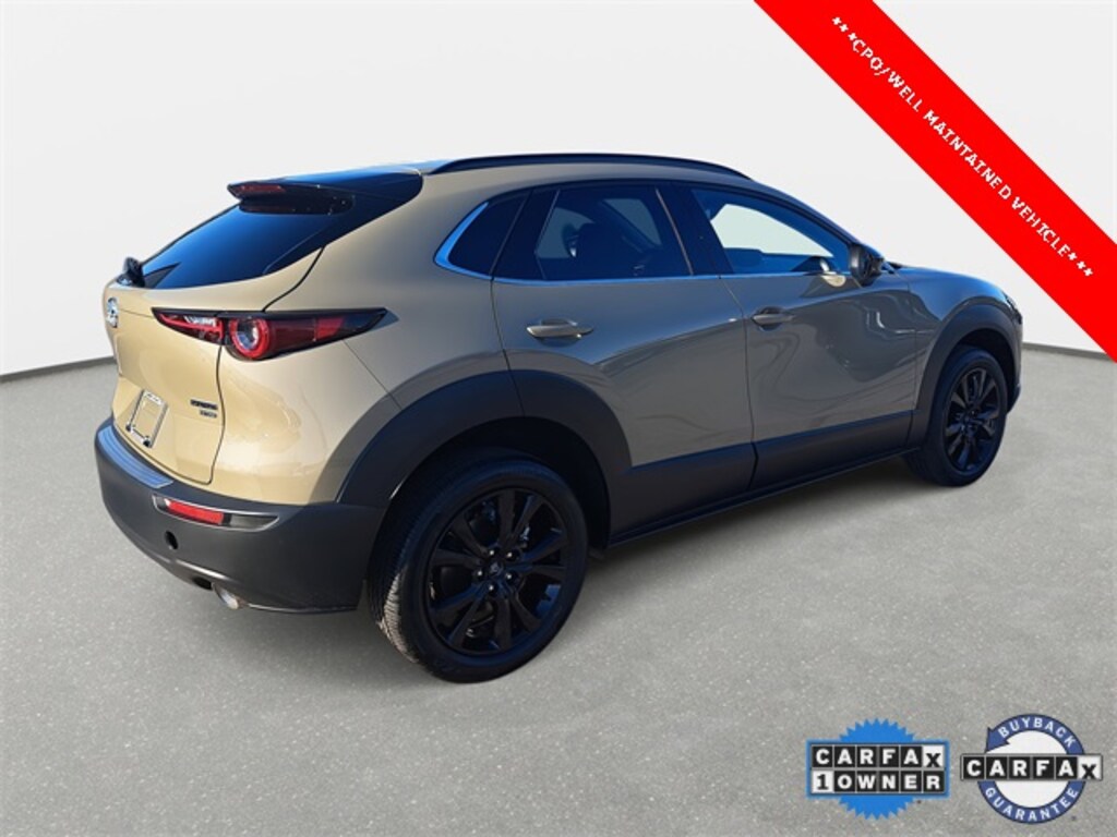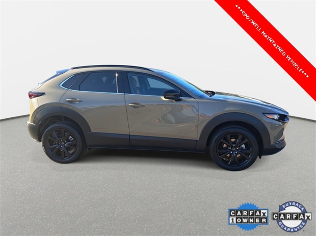 Come See This 2025 Zircon Sand Metallic Mazda CX-30 2.5 Carbon Turbo AWD and many more at Sport Durst Automotive today!