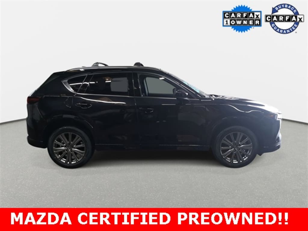Clean CARFAX. 2025 Mazda CX-5 2.5 Turbo Signature Jet Black Mica AWD 6-Speed Automatic 2.5L I4 *CLEAN HISTORY...NO ACCIDENTS REPORTED*, *BACKUP CAMERA*, *BLUETOOTH*, *SUNROOF*, *APPLE CARPLAY/ANDROID AUTO*, *ALUMINUM ALLOY WHEELS*, *LEATHER*, *ALL WHEEL DRIVE*, AppLink/Apple CarPlay and Android Auto, Auto High-beam Headlights, E911 Automatic Emergency Notification, Fully automatic headlights, Heads-Up Display, Heated rear seats, Heated/Ventilated Front Bucket Seats, Navigation system: MAZDA CONNECT, Power Liftgate, Power moonroof, Remote keyless entry, Roof Rails & Cross Bars Package, Ventilated front seats, Wheels: 19" x 7J Aluminum Alloy.