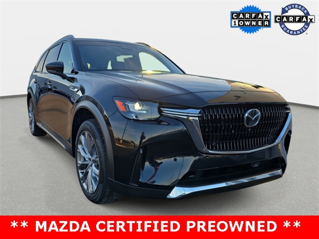 Clean CARFAX. 2025 Mazda CX-90 3.3 Turbo Premium Plus Jet Black Mica AWD 8-Speed Automatic I6 Turbo *CLEAN HISTORY...NO ACCIDENTS REPORTED*, *ALL WHEEL DRIVE*, 3rd row seats: bench, Auto High-beam Headlights, Fully automatic headlights, Mazda Connected Services, Mazda Navigation System, Navigation system: MAZDA CONNECT, Power Liftgate, Power moonroof, Security system.