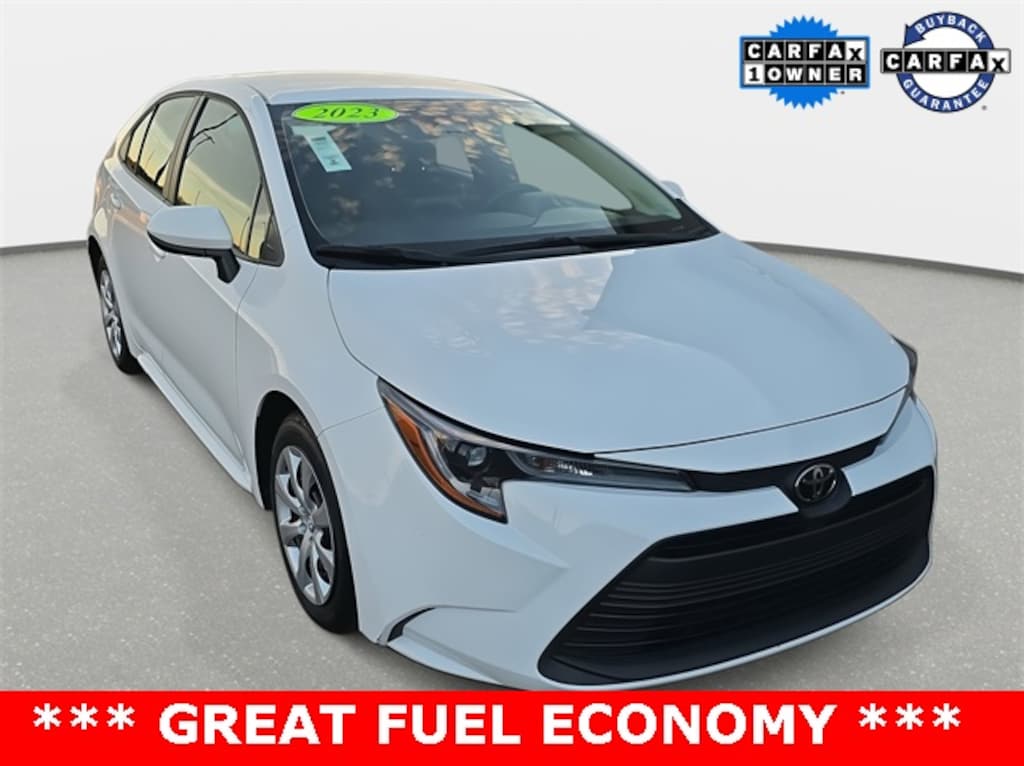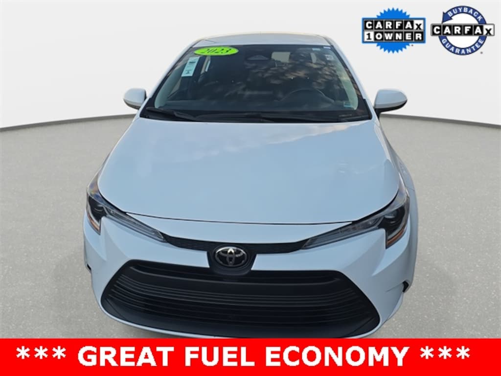 Clean CARFAX. 2023 Toyota Corolla LE White FWD CVT 2.0L I4 DOHC 16V *CLEAN HISTORY...NO ACCIDENTS REPORTED*, *BACKUP CAMERA*, *BLUETOOTH*, *APPLE CARPLAY/ANDROID AUTO*, *ALUMINUM ALLOY WHEELS*, *SIRIUS XM*, Auto High-beam Headlights, Exterior Parking Camera Rear, Fully automatic headlights, Panic alarm, Remote keyless entry.