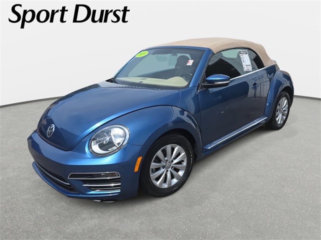 Come See This 2019 Silk Blue Metallic/Beige Roof Volkswagen Beetle Convertible 2.0T S FWD and many more at Sport Durst Automotive today!