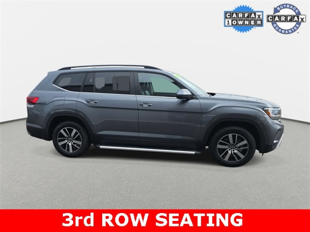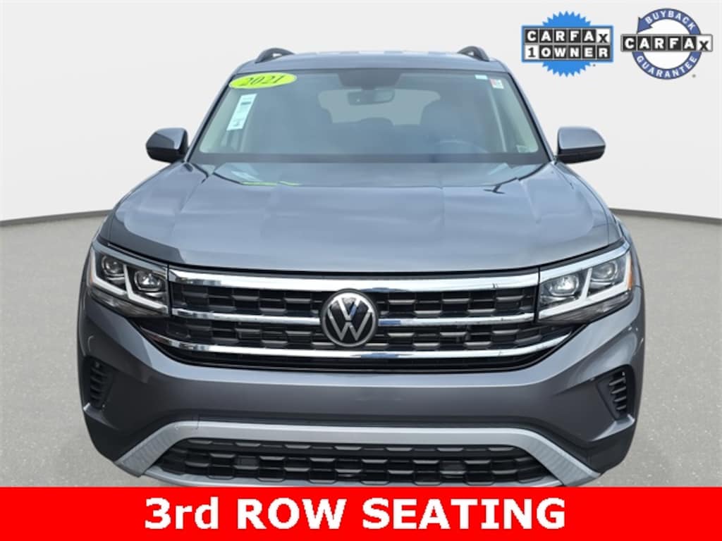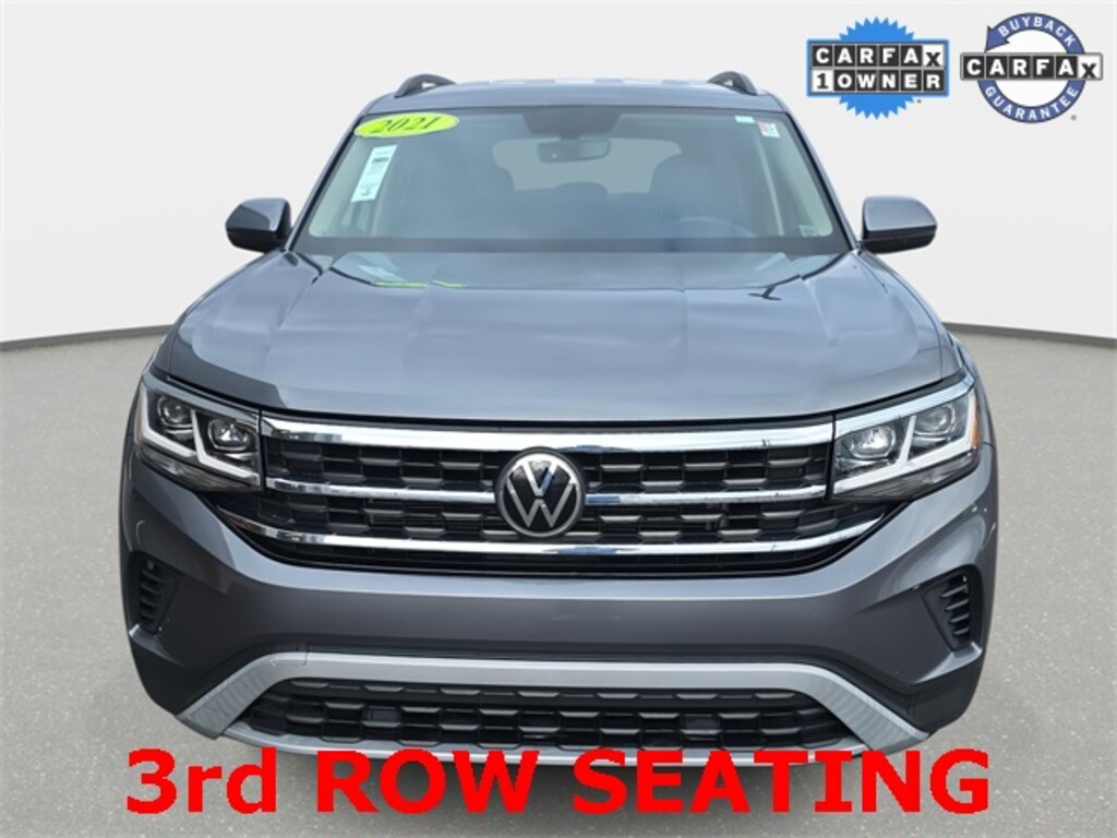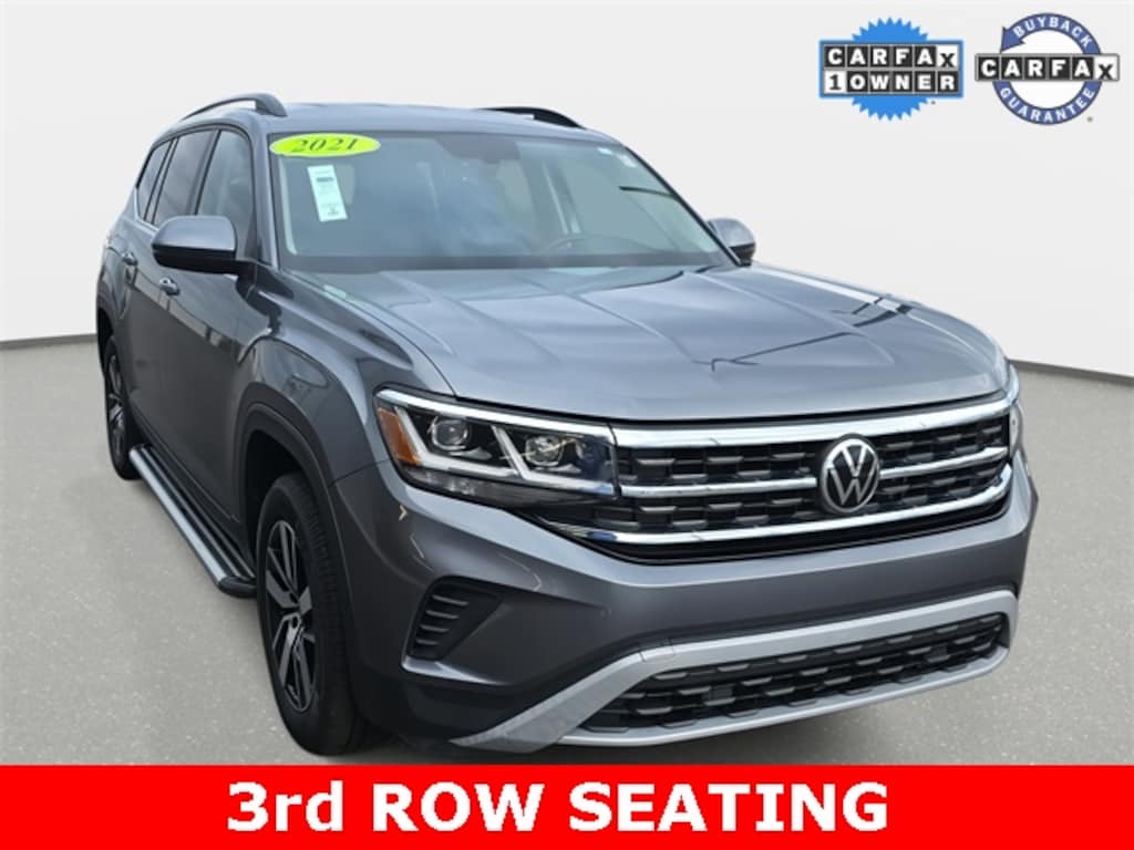 CARFAX One-Owner. Clean CARFAX. 2021 Volkswagen Atlas 2.0T SE Platinum Gray Metallic AWD 8-Speed Automatic with Tiptronic 2.0L TSI *RECENT TRADE IN*, *BACKUP CAMERA*, *APPLE CARPLAY/ANDROID AUTO*, *SIRIUS XM*, *ALL WHEEL DRIVE*, 3rd row seats: split-bench, Alloy wheels, Delay-off headlights, Exterior Parking Camera Rear, Fully automatic headlights, Heated Comfort Front Bucket Seats, Power Liftgate, Security system.