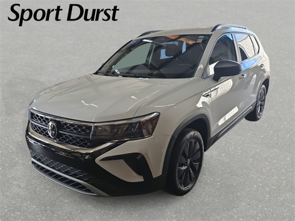 Come See This 2024 Pure White Volkswagen Taos 1.5T S FWD and many more at Sport Durst Automotive today!